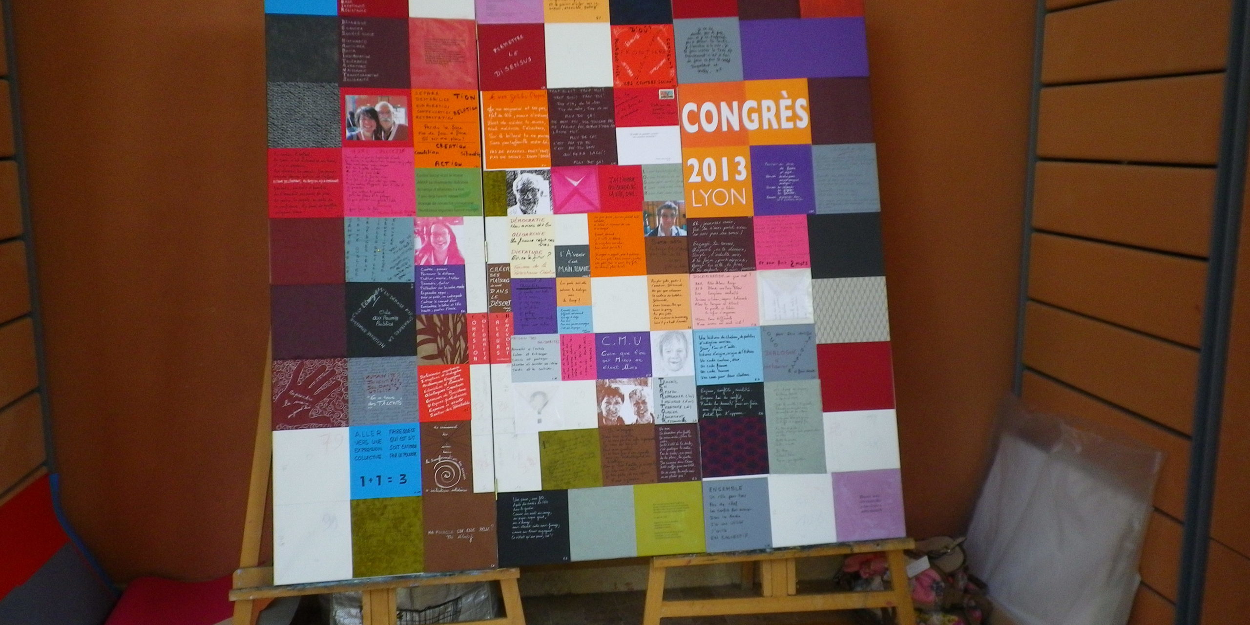 Les textes ont ensuite été calligraphiés sur des supports papier ou carton pour constituer une œuvre d’arts, mise en forme par une plasticienne au fur et à mesure du congrès. Les participants pouvaient ainsi découvrir l’œuvre en construction au fil des heures et des jours et lire les textes au gré de leurs envies.